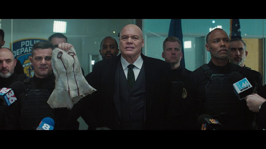 Sezonun genel değerlendirmesinde yer vereceğim ama, tüm bu birbirine bağlanan büyük meselelerin Netflix Daredevil’ı ciddiyetinde işlenmediğini belirtmek gerekiyor. Oradaki kadar karanlık bir ton ve ağır bir işleyiş yok. 13 bölümden 9’a düşmenin de etkisi vardır bunda. Bunu şu yüzden belirtiyorum, bu bölüm Moon Knight ve Loki’de imzası bulunan Justin Benson & Aaron Moorhead’ın yönetip Punisher’ın senaristi Dario Scardapane’in yazdığı bir bölüm. Tıpkı ilk bölüm gibi yeniden çekimler sonrasında eklenen bir bölüm yani, temposunu da buna borçlu diye düşünüyorum.